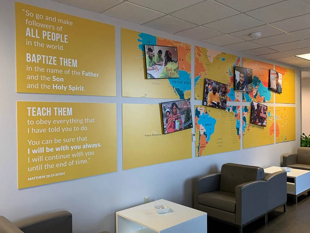We produce vibrant wall graphics, banners, and decals that celebrate your church's identity and events. From inspirational scripture murals to window decals for youth ministries, our team delivers prints that transform blank walls and common areas into places of meaning and connection.