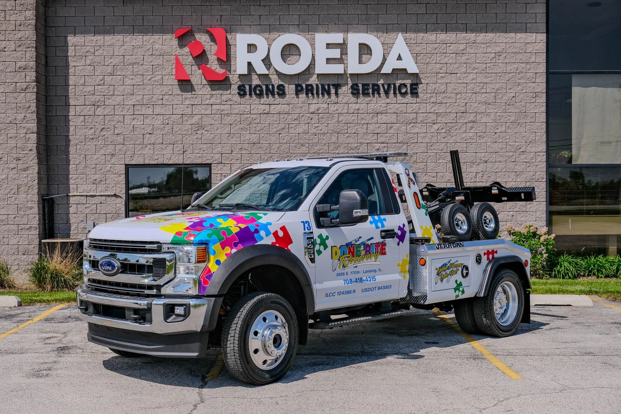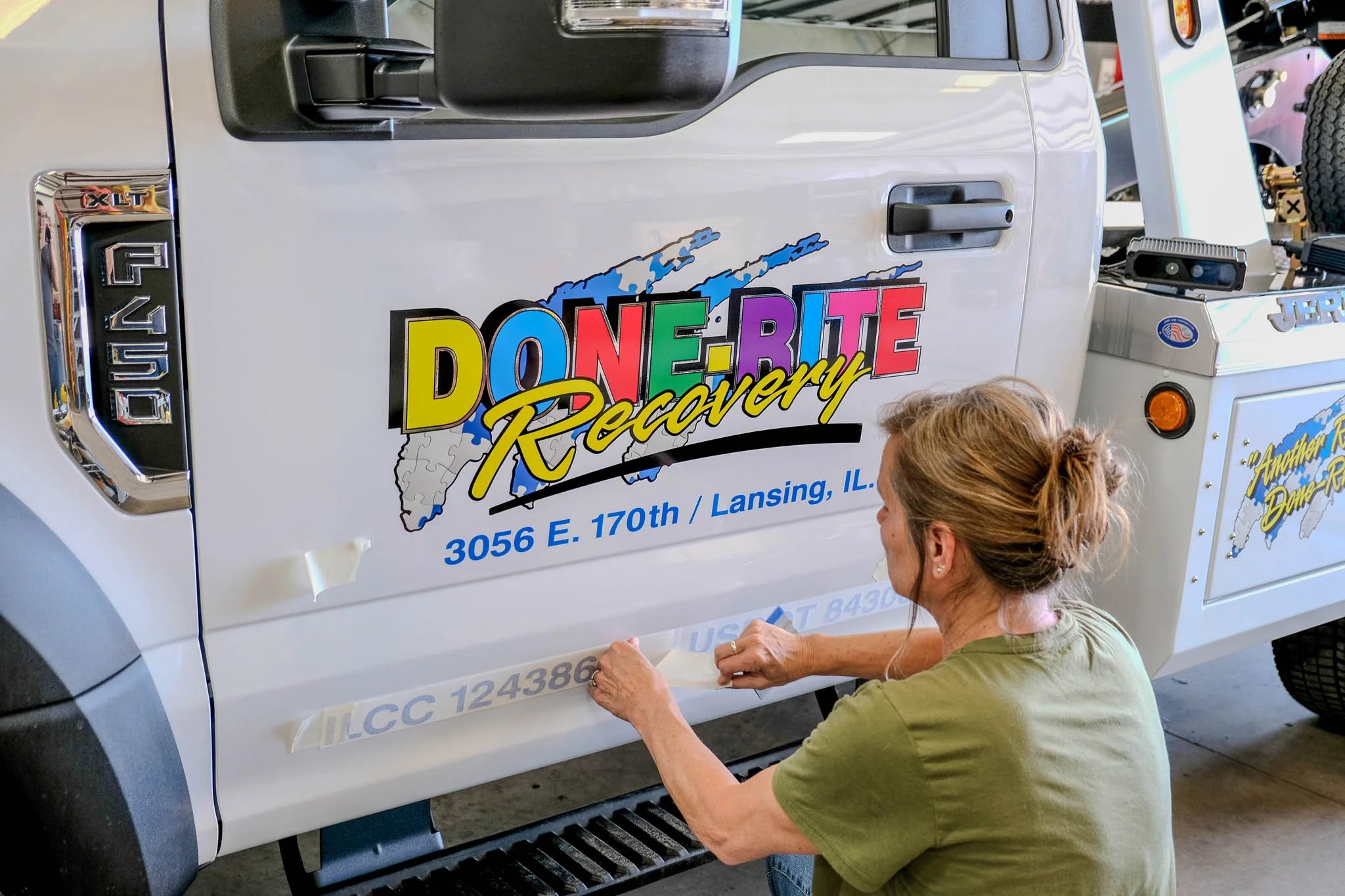 Done-Rite Recovery wanted their fleet to stand out while also reflecting their dedication to community causes. Each new vehicle needed to carry a unique look that was both eye-catching on the road and durable enough to handle heavy daily use.
